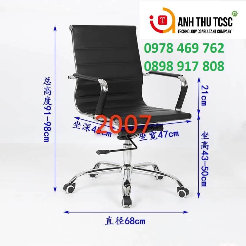 Ghế xoay văn phòng thiết kế hiện đại, bọc da cao cấp, khung thép mạ chrome chắc chắn. Sản phẩm có khả năng tăng chỉnh độ cao linh hoạt, chân xoay 5 bánh di chuyển êm ái, phù hợp làm ghế làm việc, ghế trưởng phòng hoặc ghế tiếp khách chuyên nghiệp